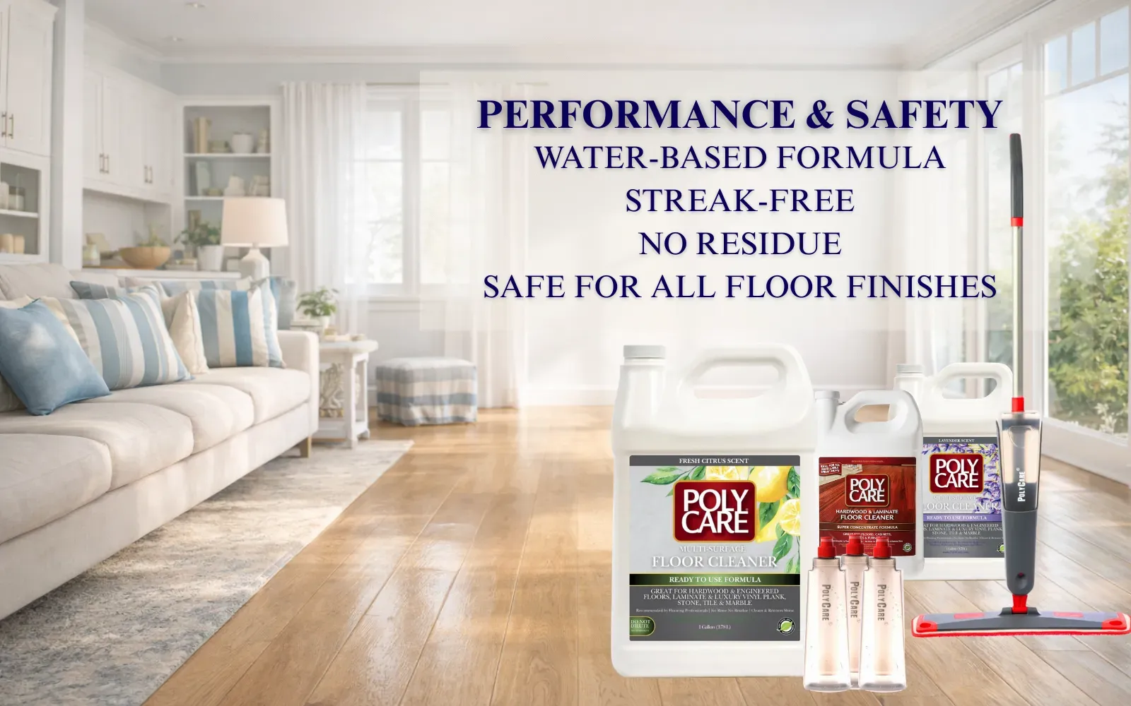 PolyCare Multi-Surface Floor Cleaner Refill Liquid fills your empty Mop cartridge, Spray bottle or Smart Automatic Cleaning Robots with Ready-to-Use PolyCare Multi-Surface Citrus Floor Cleaner. Safe for all types of finish. Our products clean gently, with no streaks or residue leaving a fresh look on your floors and a pleasant Citrus Scent. Using PolyCare Cleaner reveals the beauty of your floors. Recommended by Flooring Professionals and Installers. PolyCare Multi-Surface Citrus Floor Cleaner Refill – Water-Based, Streak-Free, Non-Toxic, Safe for all Floors.